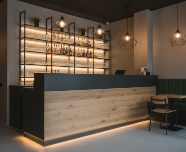 Wir fertigen langlebige Bar- und Servicetheken, Tische, Sitzbänke (Boxen) und weitere Ausstattung, die hoher Beanspruchung standhält und gleichzeitig eine einzigartige Atmosphäre in deinem Betrieb schafft.