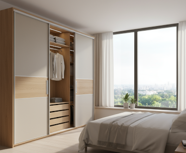 Wir nutzen jeden Zentimeter deines Raumes. Wir entwerfen dir Einbauschränke vom Boden bis zur Decke, mit Schiebe- oder Drehtüren und einer inneren Einteilung, die genau deinen Bedürfnissen entspricht – von Regalen und Schubladen bis hin zu speziellen Kleiderbügelsystemen.